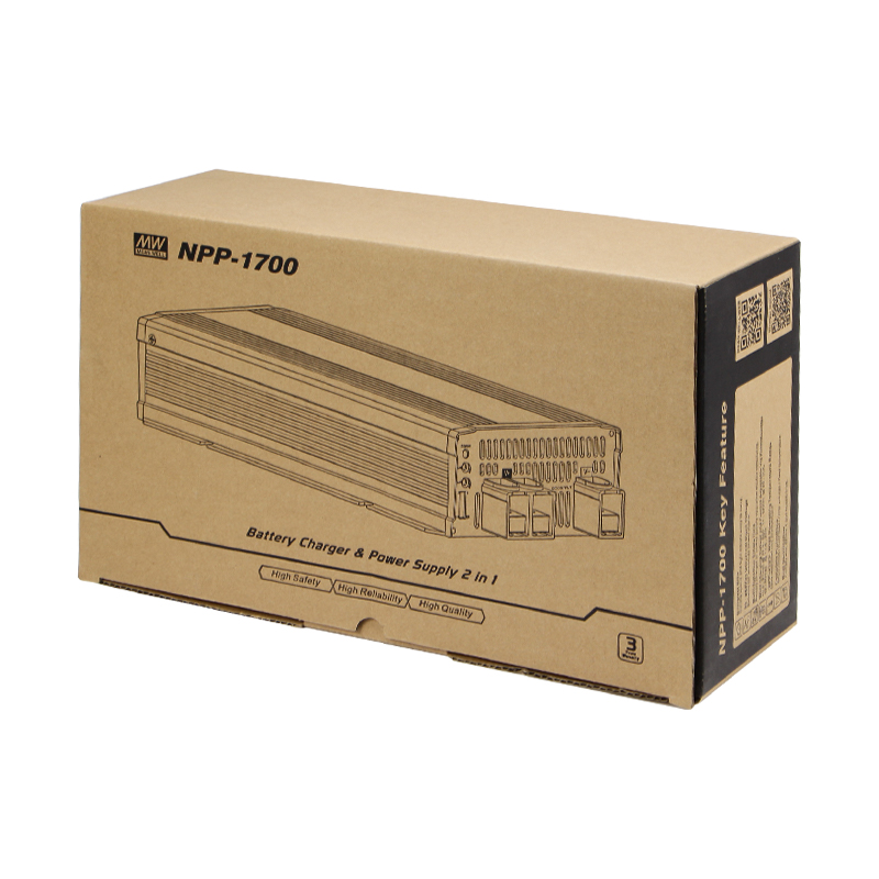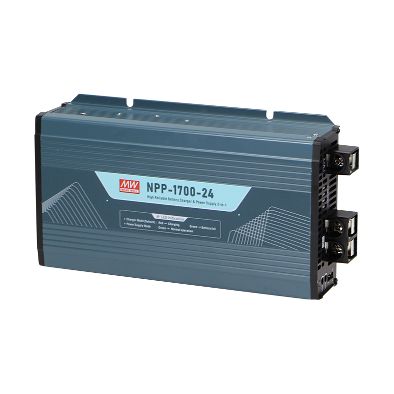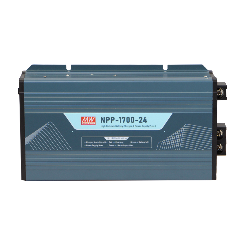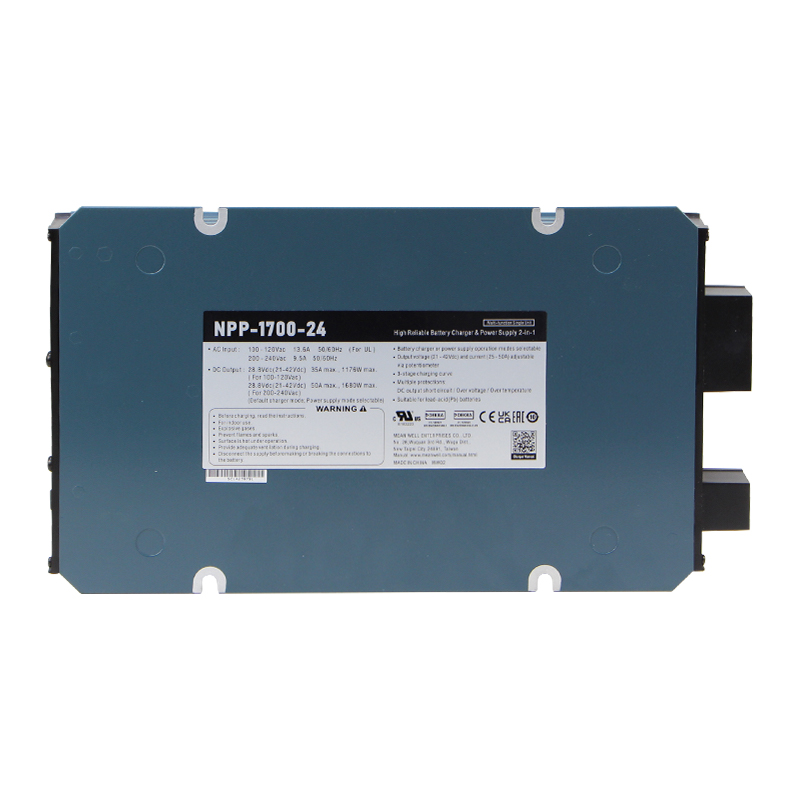 NPP-1200 is a miniaturized dual-purpose charger and power supply. In addition to being used as a three-stage charger for lead-acid batteries, it can also be used as a constant voltage output power supply to drive general loads. The operating mode can be quickly switched by plugging or unplugging a connector on the front panel. Other features include: ultra-wide voltage output, adjustable voltage via VR on the panel (10.5~21V, 21~42V, 42~80V), adjustable charging current (50~100%), built-in intelligent fan with variable speed based on temperature to reduce noise and extend fan lifetime, -30~+70°C wide operating temperature range, suitability for use in different environments, built-in remote ON/OFF control, compliance with IEC/EN/UL 62368-1 and household EN 60335-1-1-2-29 dual safety standards, multiple built-in protections, and a 3-year warranty. The NPP-1200 is truly an intelligent, safe, and reliable universal dual-purpose charger and power supply with outstanding cost performance.